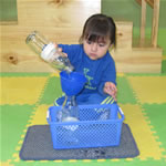 Ahora entregaremos dos botellas transparentes de boca ancha, la misión consiste en pasar el agua con un embudo, esta actividad es placentera ya que el chorro al caer captura la vista y logra mantener al niño muy concentrado y atento, además de ayudar a la maduración ojo-mano. |